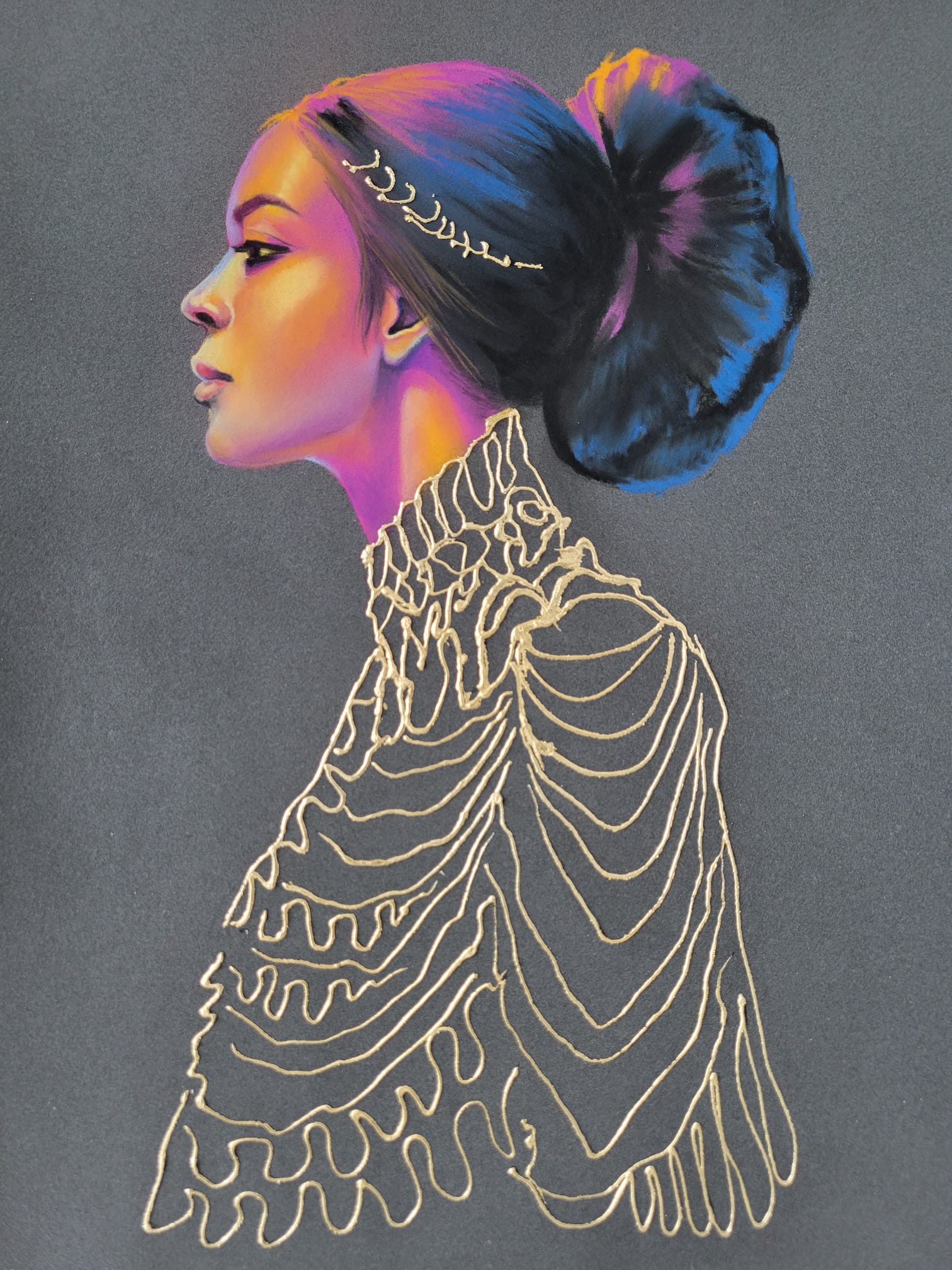 Dry Pastel with Gold Leaf on Paper Board
