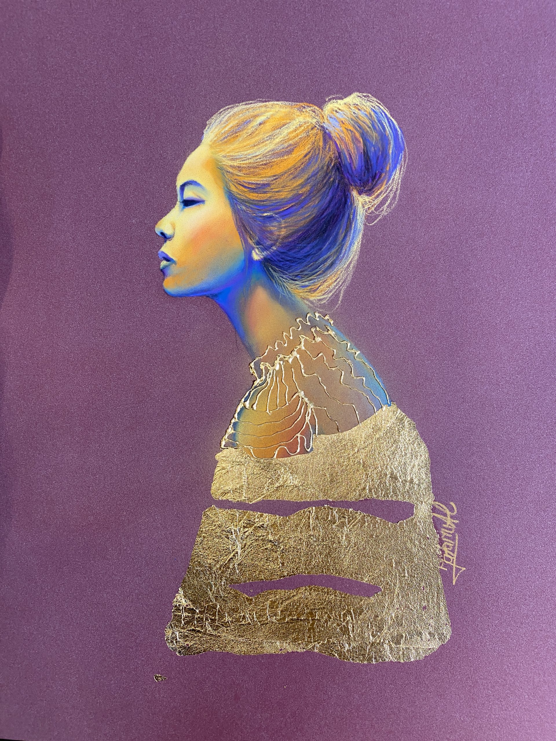 Dry Pastel with Gold Leaf on Paper Board