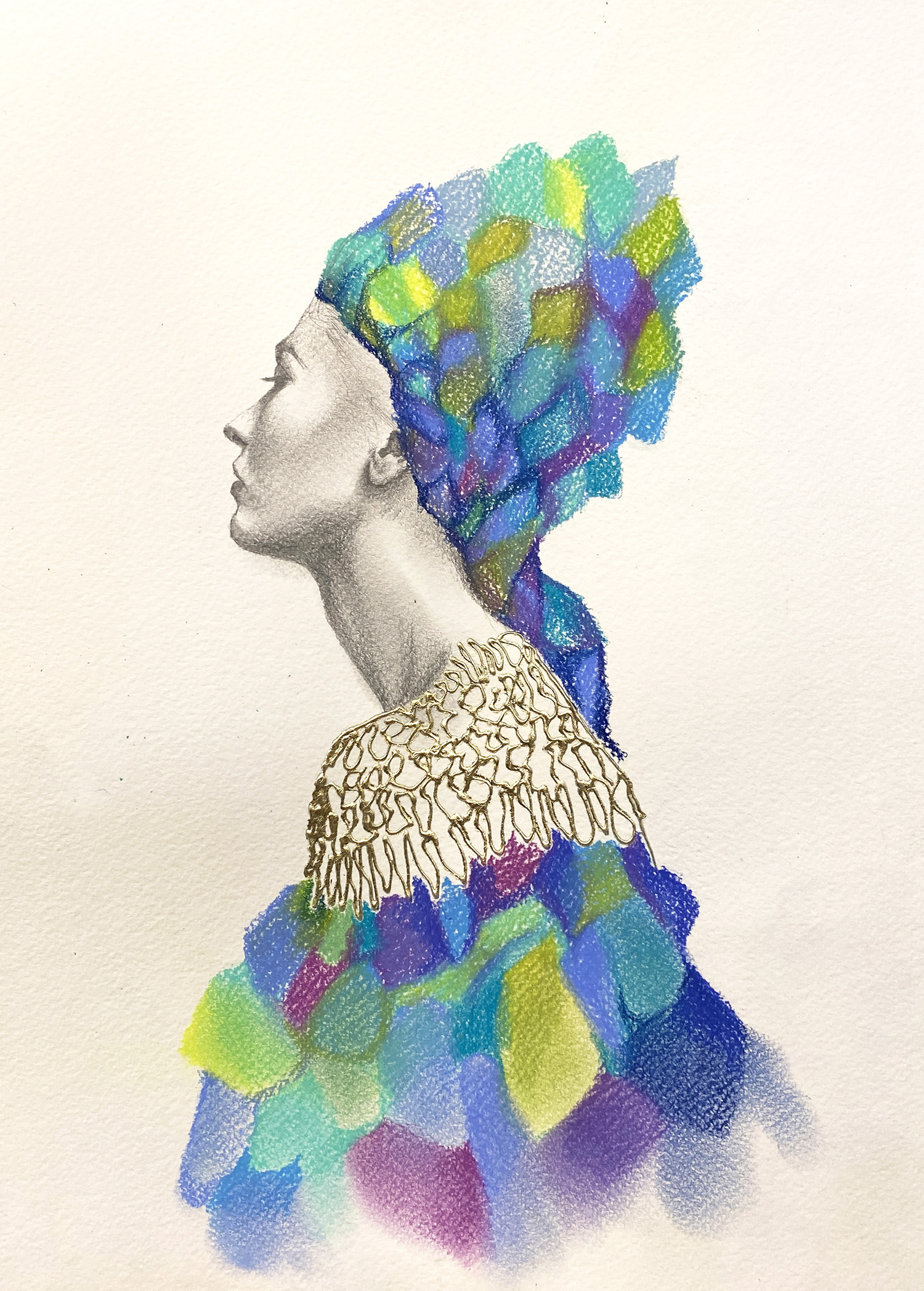Dry Pastel with Gold Leaf on Paper