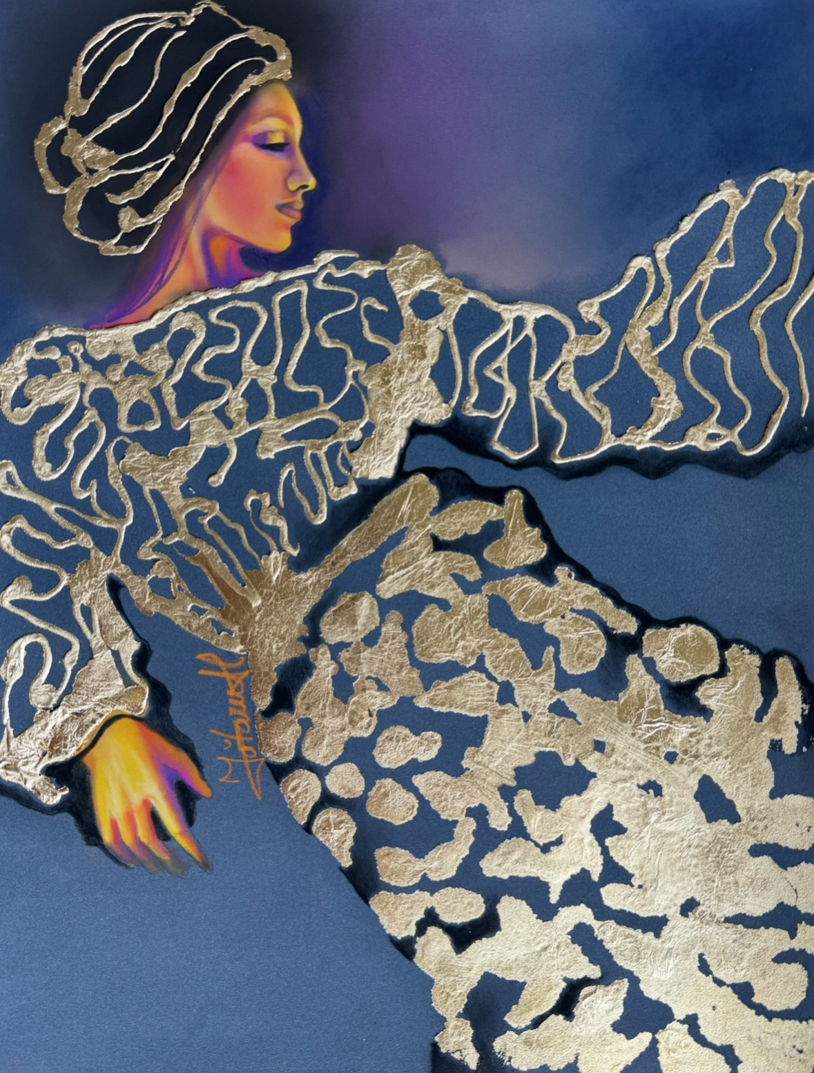 “Gold Dress” Pastel & Gold Leaf – Micak Gallery